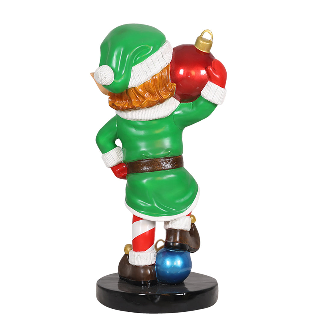 ELF BOY HOLDING ORNAMENT BALL