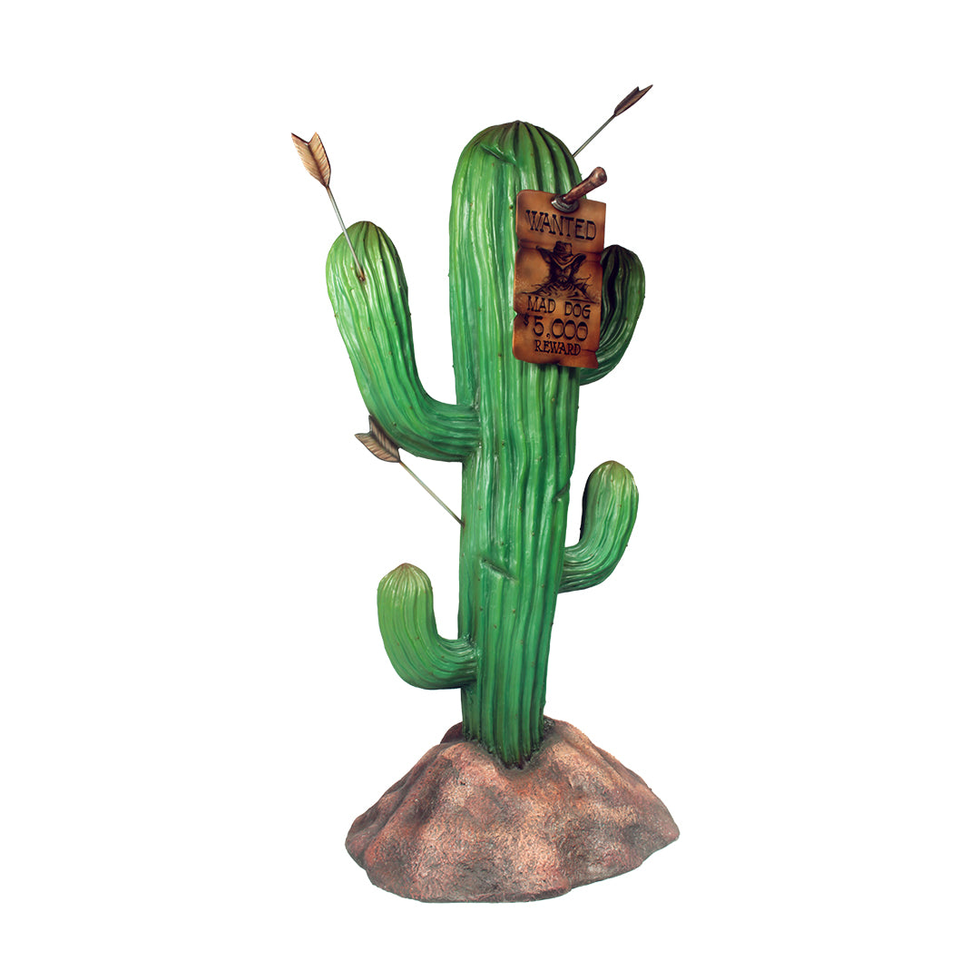 Create an amazing themed display for your visitors with this big cactus statue with wanted person sign. This product is an eye-catcher and will attract visitors to your establishment. It is sculpted in the finest detail and is made of durable fiberglass resin that can withstand any weather. It is an ideal display on any indoor and outdoor spaces.