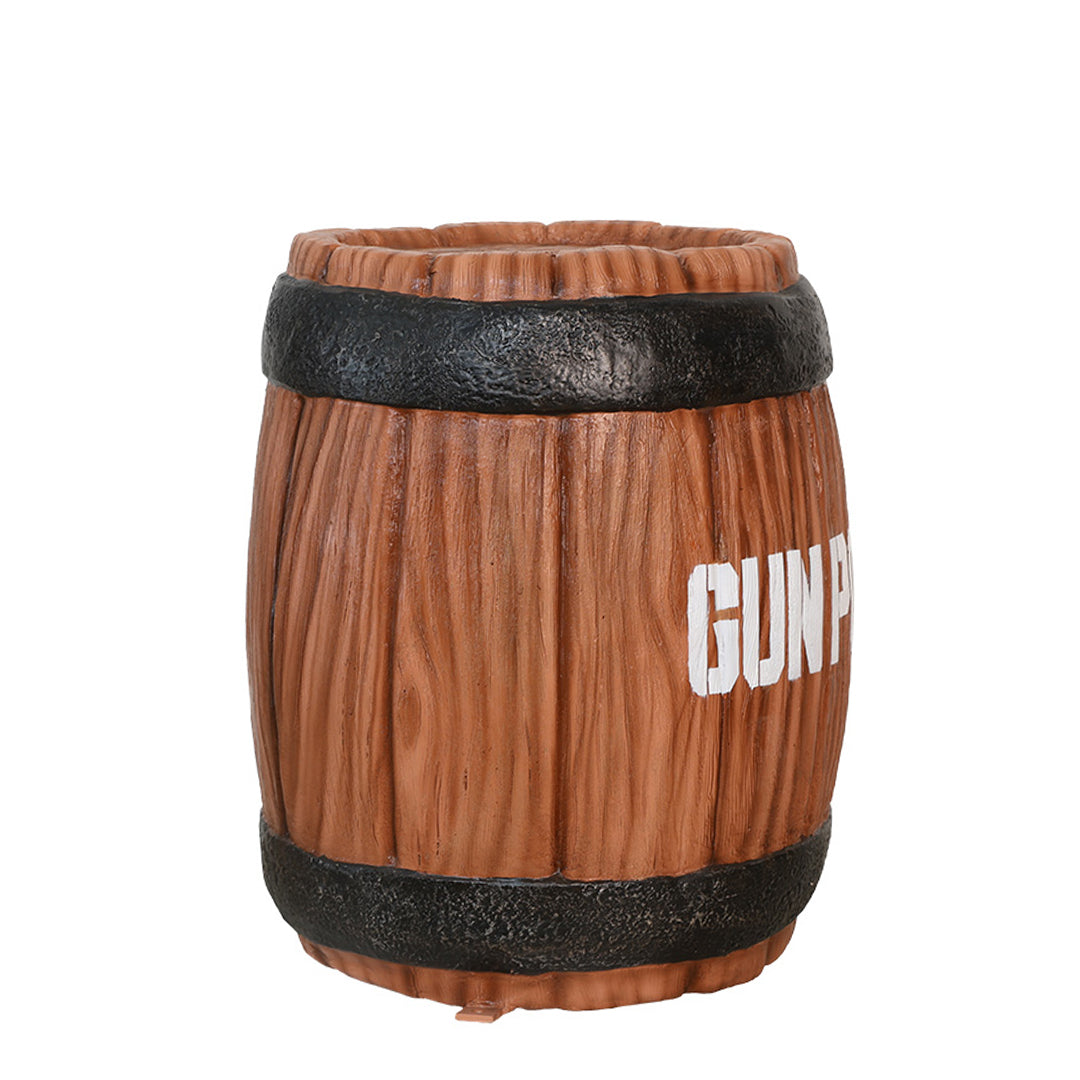 Attract people to your establishment with this Barrel of Gun powder replica. This incredible product is sculpted and painted in the finest detail for a realistic look. It is made of durable fiberglass resin that can withstand any weather, making it an ideal display for any indoor and outdoor environment.