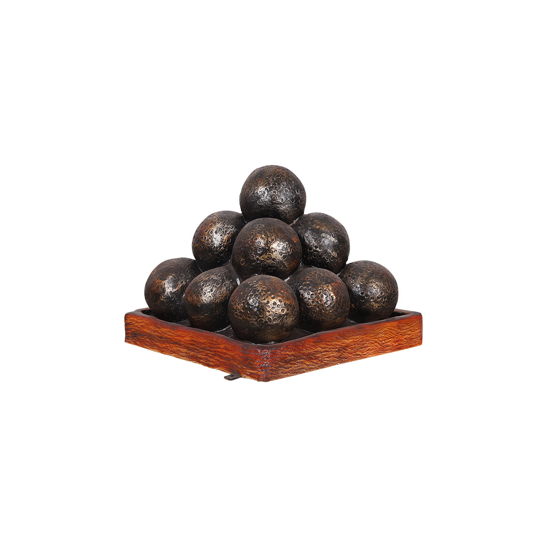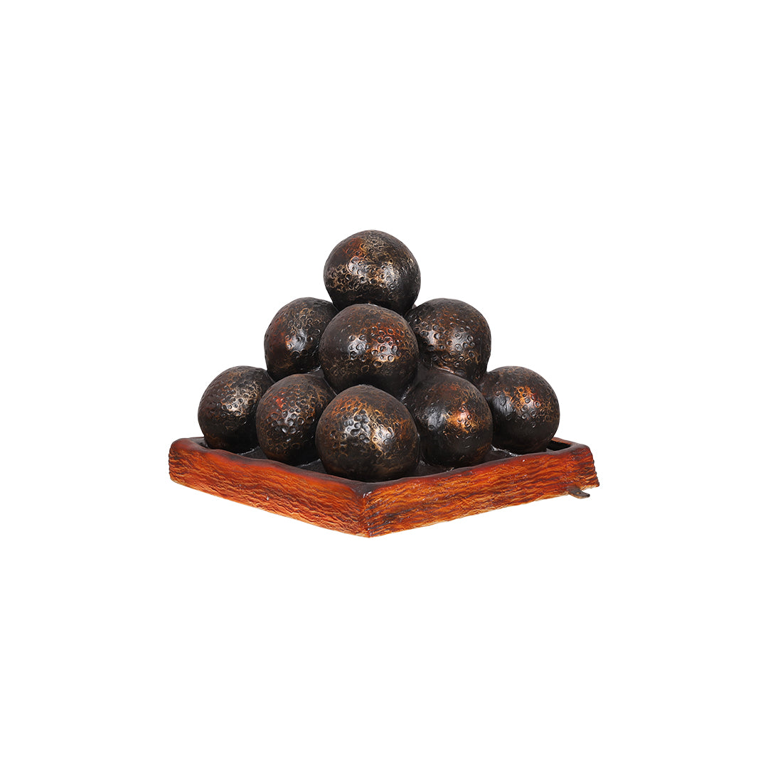 Attract people to your establishment with this realistic canon ball pyramid statue. This incredible product is sculpted and painted in the finest detail to give it a realistic look. It is made of durable fiberglass resin that can withstand any weather, making it an ideal display for any indoor and outdoor environment. This product is best paired with our cannon.